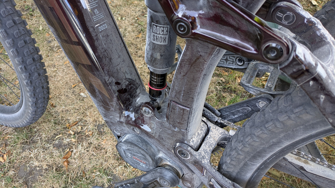 Huge rock impacts to my already battered frame and my right foot. The X2 loses air through the ride so I get lots of pedal strikes... Borrowing a mate's Switchblade this weekend to see how that feels.