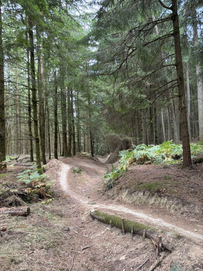 Sadly the same builder also does a line in un-rollable little take-offs over fallen trees and metre high drops to flat over over old walls and fences so a few undignified dismounts and scrambles required.