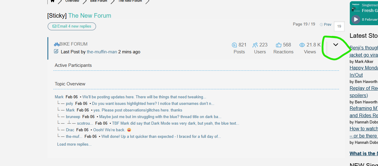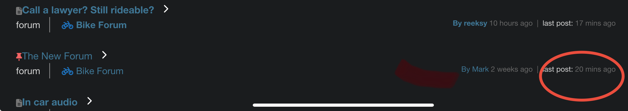 For some reason the New Forum thread is sticky in the Bike forum, but not ‘Latest’.