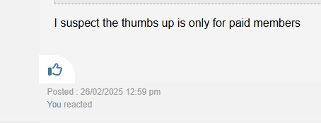 I can see a couple of 'xxxx' reacted below posts, but no thumbs.