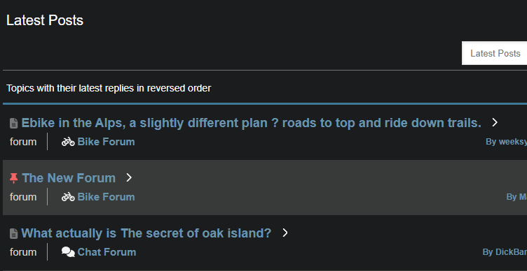 Thanks @Cougar I wasn't aware that was an option. Now bookmarked as my preferred way to access the forum. Maybe just me, but I do wonder why that isn't the default way to order threads. Also, it seems you can only view a mix of the forums in post order, what was the old 'overview'. I can't see a way of ordering just the posts in (for example,) the bike forum in post order?