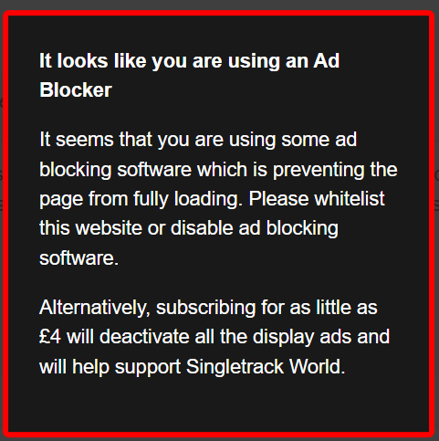 subscriber running Pi-hole - with https://singletrackmag.com/ whitelisted.