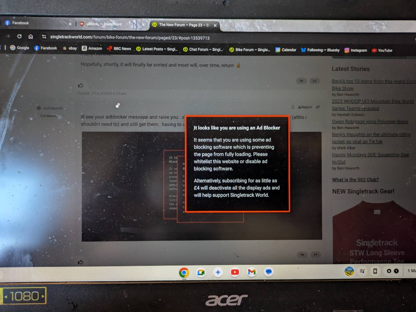 FWIW I've currently disabled the adblocker on STW but now I'm gettings ads AND the pop up telling me to disable the adblocker. I'm having to type this on my phone
