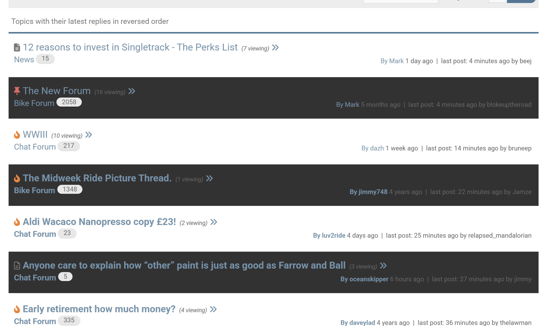 Yeah, me too, but I did have a couple of my posts on the Bikepacking Equipment thread go into limbo last night so that's still happening occasionally. I doubt that's a format/theme issue and likely needs to be fixed before any more cosmetic changes.