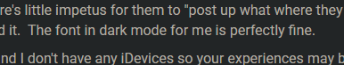 I haven't been logged out in months. I haven't seen an advert in months. Your "whack-an-ad" complaint has already been responded to on this very page by Mark who admitted he'd made a mistake and said he was fixing it, there's little impetus for them to "post up what where they are with things" if you're not going to read it. The font in dark mode for me is perfectly fine.