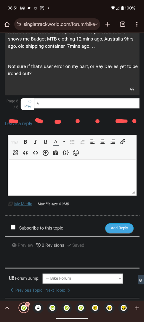 The burger menu to go back the the posts list is a bit finiky (and an annoying extra click). I only just spotted the forum jump thing grabbing screenshots as I rarely go below the dotted line. But that doesn't navigate me back to the post list so, irrelevant 😄
