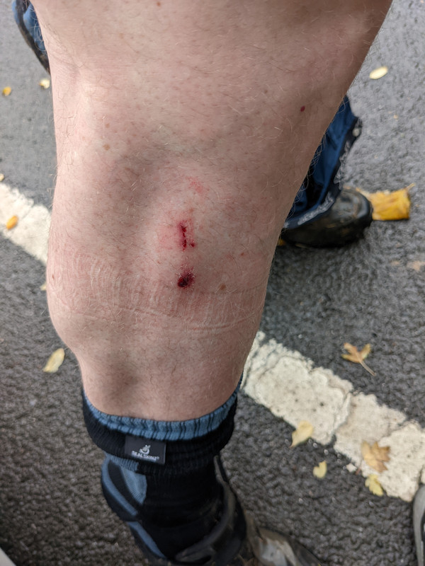 That'll be fine, it's only a muddy chute. Yeah don't use the front brake you fool. Ti's but a scratch at least.
