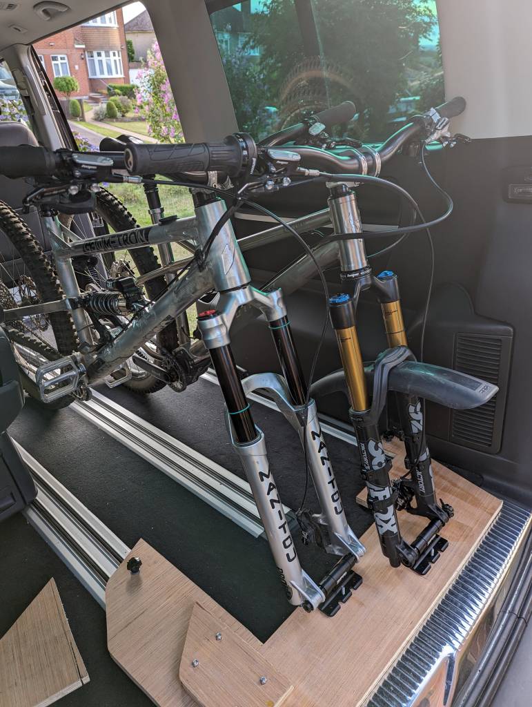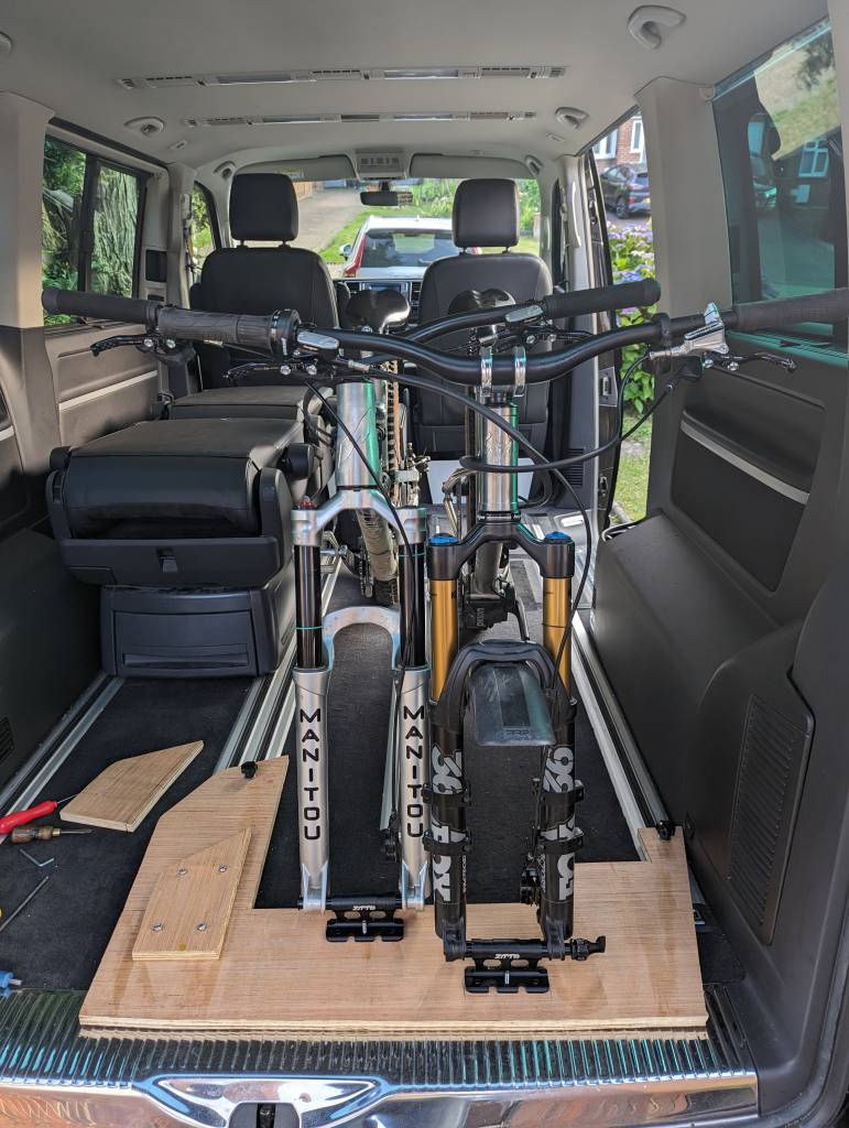 No riding today, it a was 'strip down and rebuild bike after 28000m of descending in the Alps' day - plus working out how to fit 2 bikes and a bed area into the back of a T6...