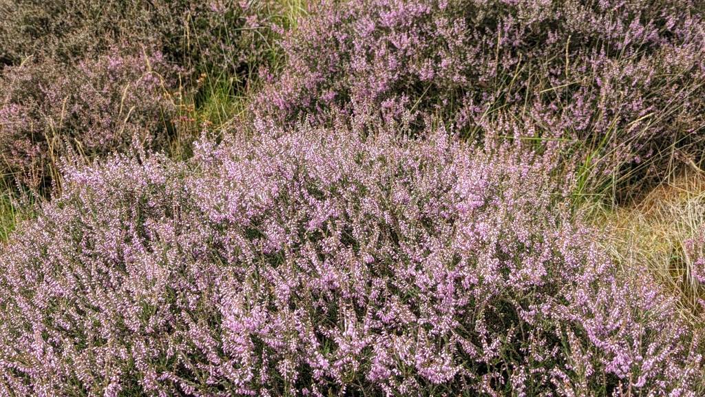 Purple yet to get to the Lammermuirs, but down in Tweeddale the heather is definitely out (I can remember when it was all heather up there)
