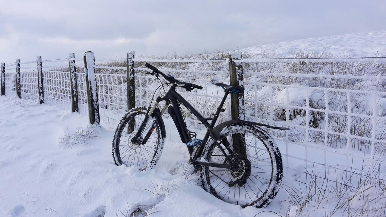 Stuck the "plus" tyres back on the Scale and went for a ride over the Gap today. First section from Talybont over to Dolygaer was great, really crisp and frozen, the south slope of the Gap was already thawing though and only the last 1/2 mile was still that real nice compact snow that makes it such a pleasure to ride. Coming down the North slope was fun though with quite deep snow and less compaction making for interesting riding conditions. All round, a great day out