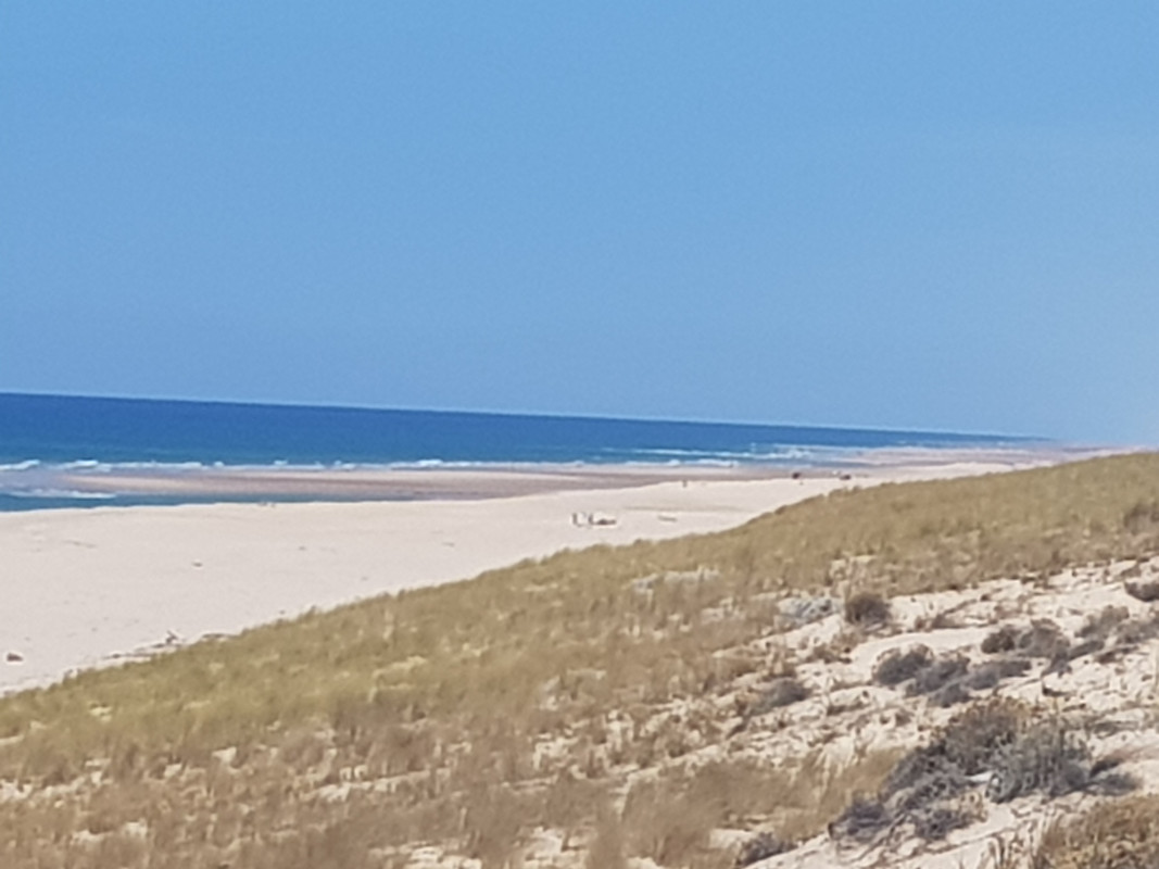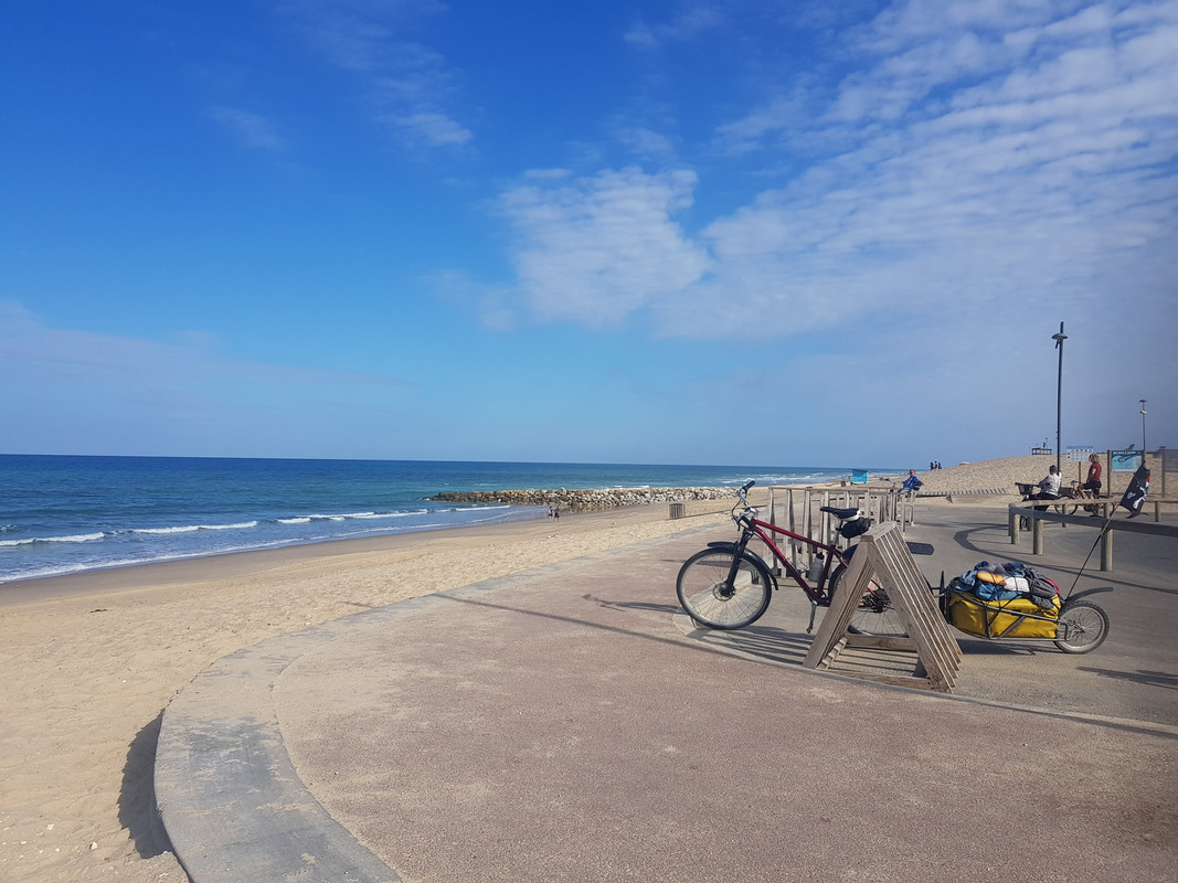 From Royan the EV1 is close to but rarely on the coast, it runs through pine forests behind the dunes. I find it bumpy and demoralising. There are alternatives further inland or a long way inland. There's a railway trail into Bordeaux from Lacanau if you want to visit Bordeaux as others have suggested but don't fancy the vélo route down the right bank of the Garonne from Royan. There are more cycles routes than on the weserradweg map in Gironde: