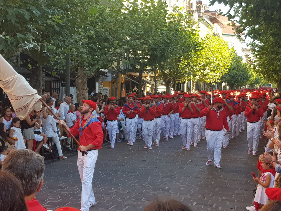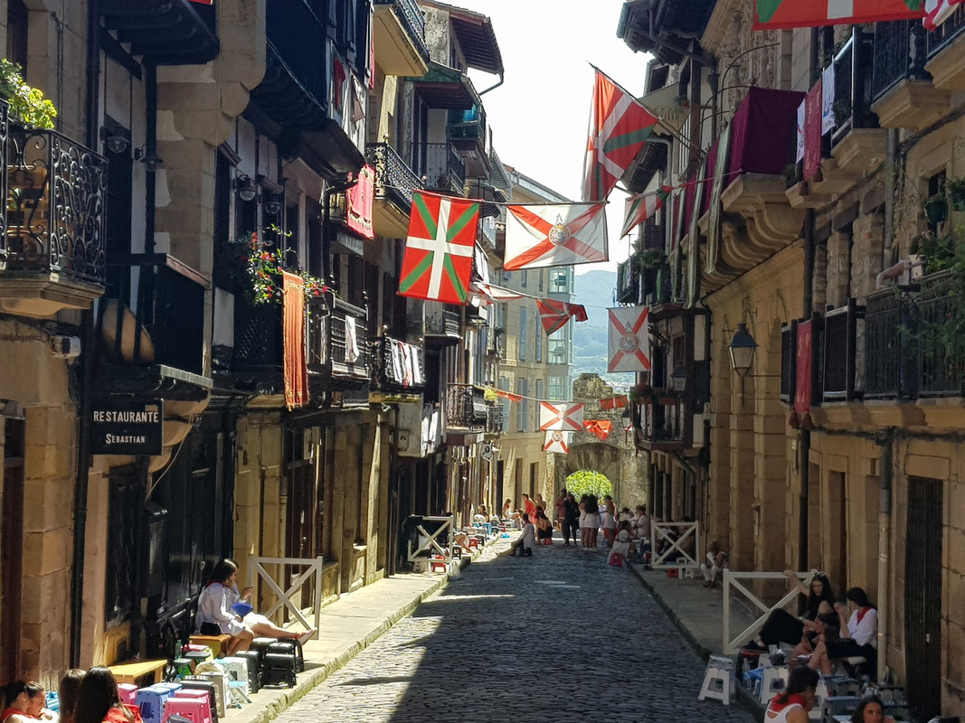 Ive been for a wander around the town. Lovely old town but boy are the gearing up for a huge party. It felt like the calm before the storm. Every bar was full of folk in variants of basque costume. White with a red scarf and a big floppy red beret. Even the cops had the berets on.