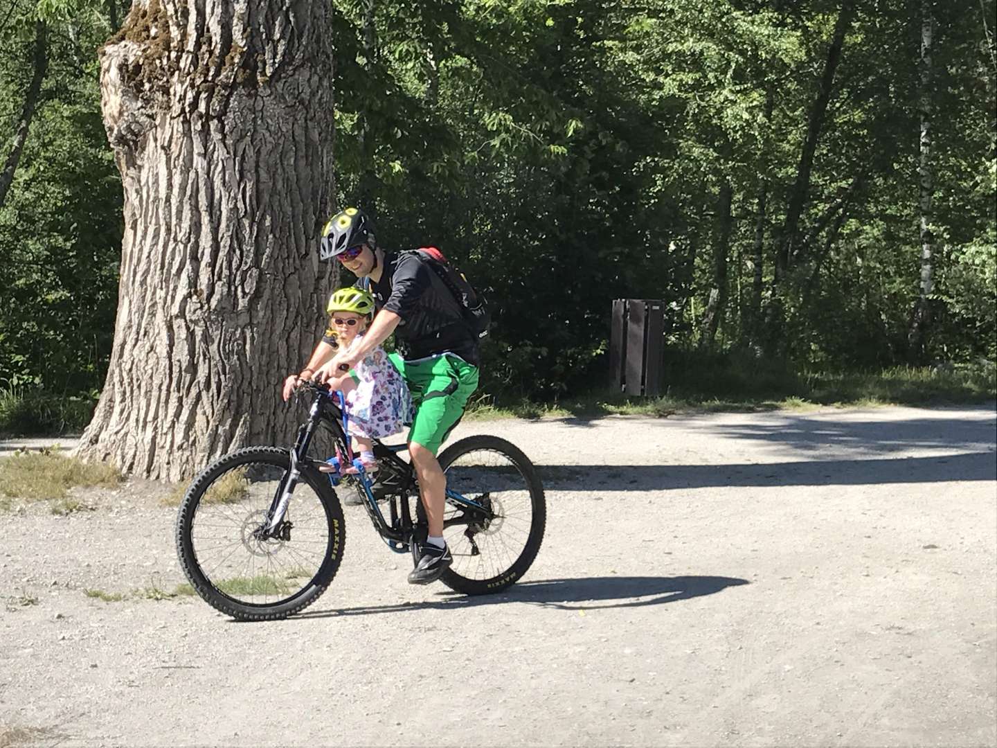 So sadly I think this is what you’ll likely find, even with our Thule Yepp mini you couldn’t ride normally and had to ride with your knees stuck out.
