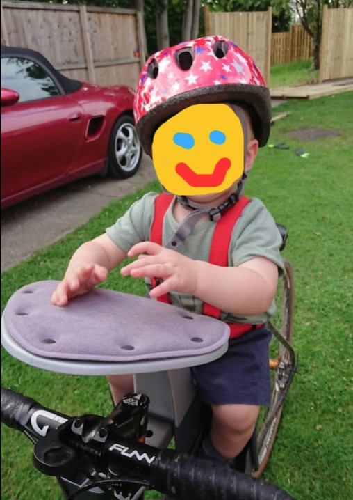 He always wore a helmet on the weeride, never fell off with him. I suppose the question is, how often do you fall over riding simple terrain that you’d be happy riding with a 1 year old. Accidents do happen, car crashes happen but we need to risk assess it a bit. I rode Gisburn blue with him, canal towpaths, local footpaths and BW’s. He’s seven now and riding all those and bits of reds now. He loved the bike, getting out on adventures. A ride out in the back lanes to a cafe, back via a massive John Deere dealer that has tons of tractors outside was like heaven to a 2 year old lad.