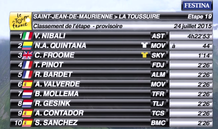 2.1K to go for Nibbs. Quintana 1'10 back. Froome 1'27 back.