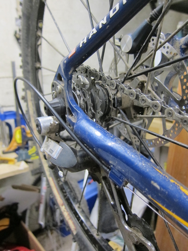 But I'm impressed by the use of the remote lever to shift gears, that in itself deserves a Useful Bodge Award. And I guess it lets you keep the chain tension / mech position tight.