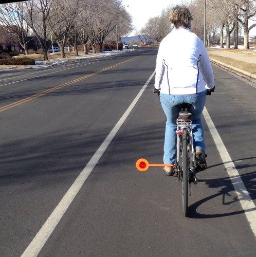 +1 for stick out reflector as above, or pair with one of these - [url= https://www.amazon.co.uk/Wave-120970-M-Wave-Safety-Flagpole/dp/B003LHO6S6/ref=pd_lpo_sbs_200_t_1?_encoding=UTF8&psc=1&refRID=237WW77C7DAA3613XYDK ]stick out flag[/url] for extra emphasis...