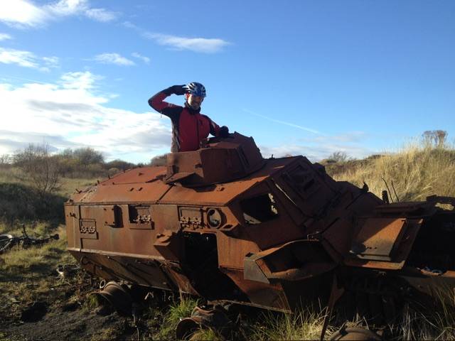 Not sure who was more afraid in those seconds, us or the squaddies in their hole who were going to have to explain how a bazillion lumens of mountainbikers made it into their encampment they were presumably supposed to be defending unchallenged!