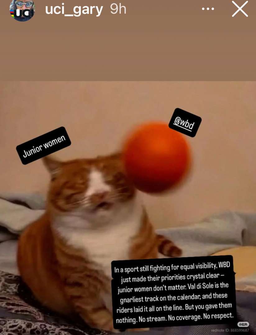 Theyve just abruptly stopped broadcasting the male junior race on YouTube and apparently it'll be shown later.
