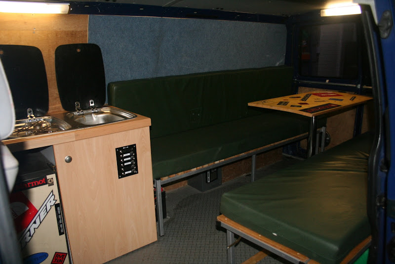 This is my LT35 - significantly bigger than a Transporter, but the principle is the same. Click pic for link to more pics of the still-in-progress conversion.