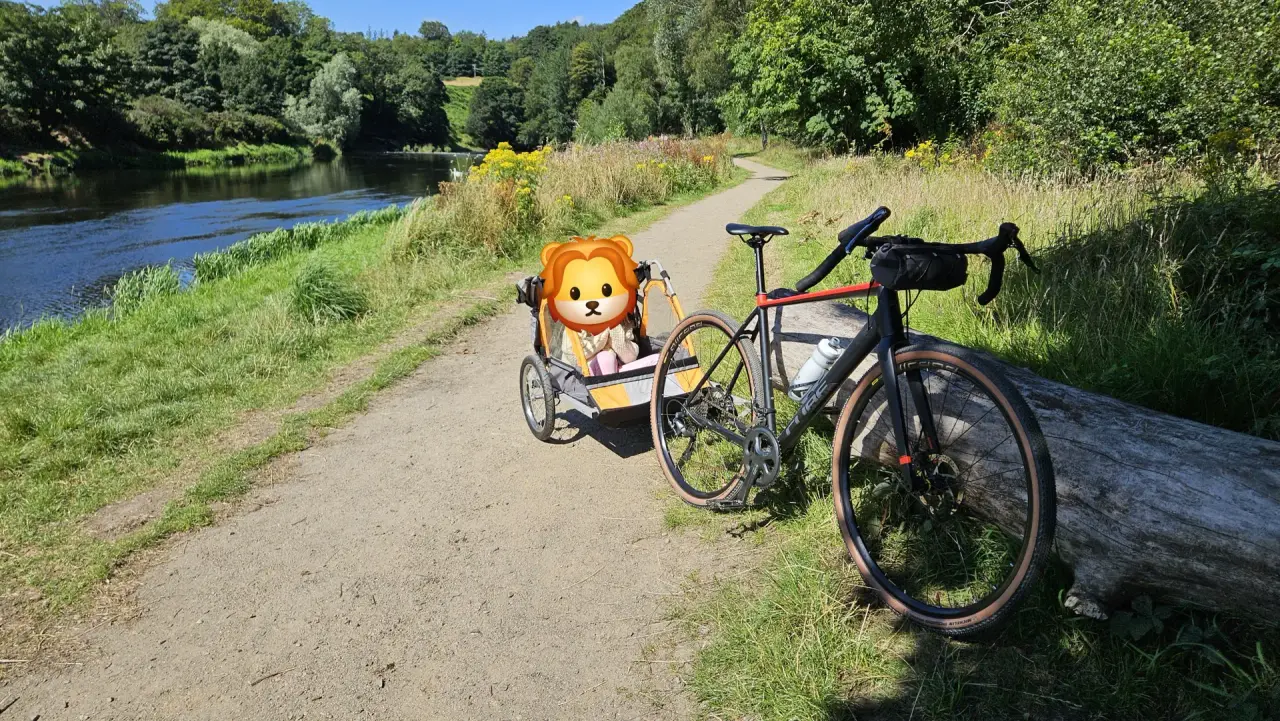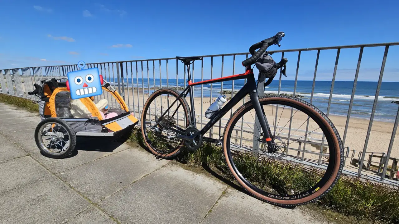 Did a nice 22 mile mixed surface with the little one in the trailer. Along the River Dee, down to the beach for ice cream and then along the River Don.