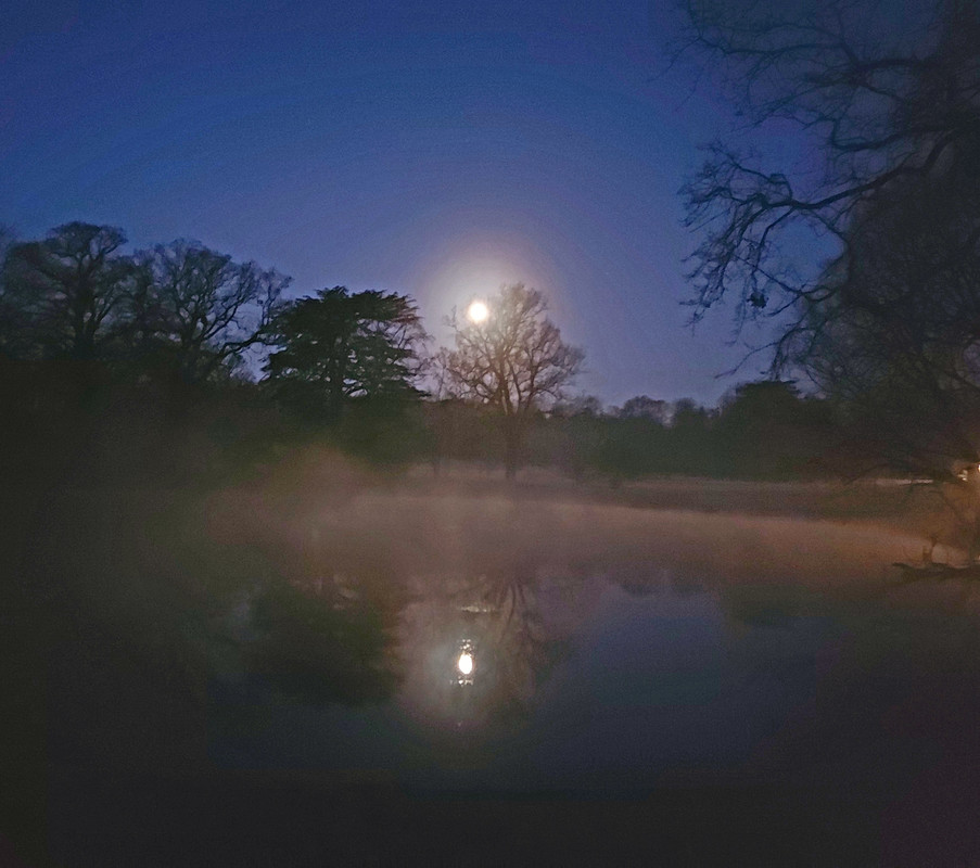 Bivvy night. Very calm. Ground has dried out. And there's a full moon. Clouded over a bit now but that's often no bad thig at this time of year.