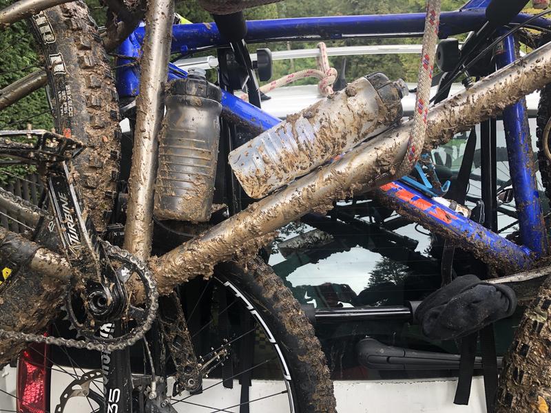 Avoided the mud on the way up, considerably less fortunate on the free ride trails on the way down 🙂