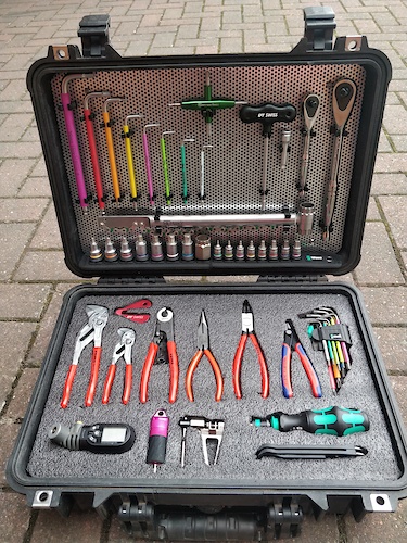 The top layer and lid is all the most commonly used stuff, next level down is dividers, so more space efficient and can fit a lot more. Chucked a load of stuff out that I didn’t use or wasn’t needed to maintain my bikes. Can’t stand losing tools or not knowing where they are, it’s mild ocd! The work toolbox got out of hand…