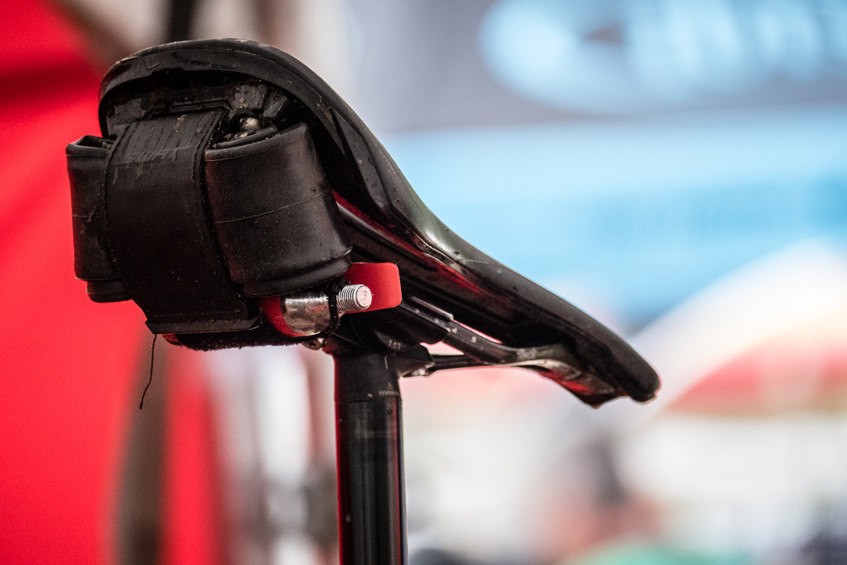 The BOA system means it locks tightly to the saddle rails yet can easily swap between bikes.