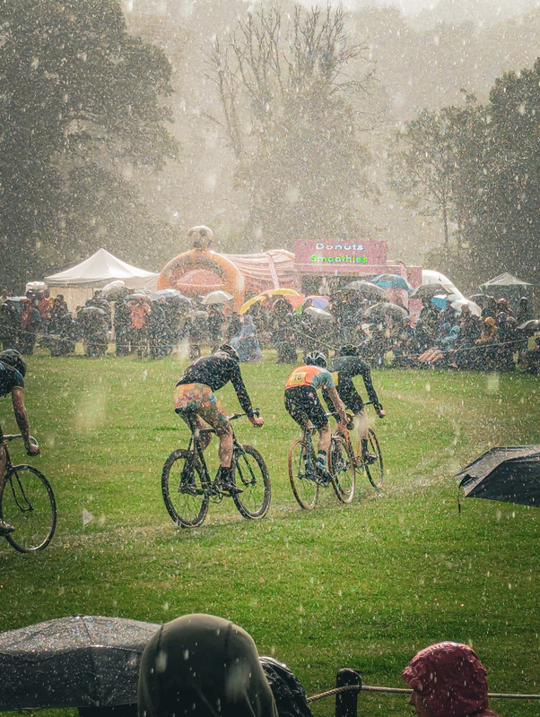 Got properly soaked! Tried to hide under some trees for a while but had to emerge eventually. Good fun though.