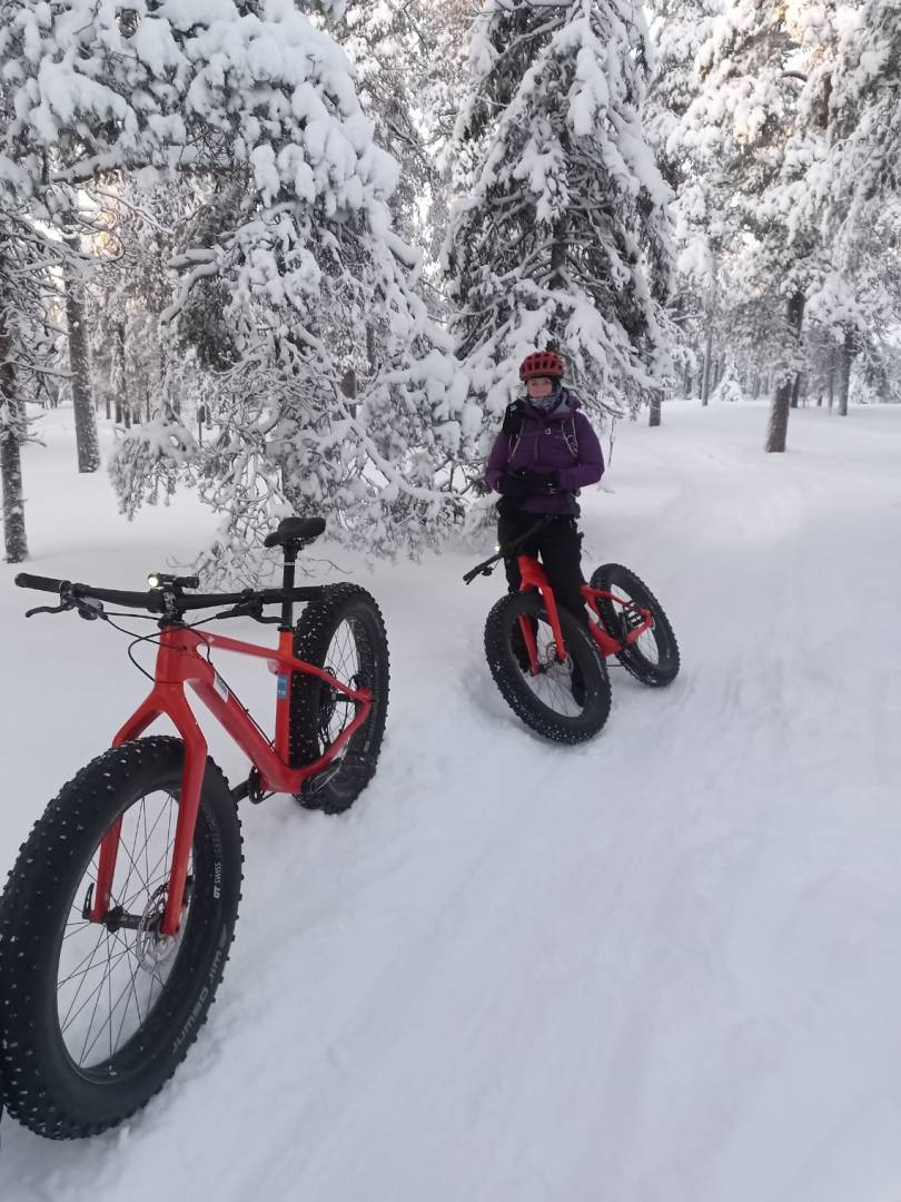 In Finland, managed 3 hours today in warm (+1C) and soft conditions, but OK with tyres massively deflated. -17C and great trail conditions in Rovaniemi on Monday. Dropped to -28C Tuesday morning which was painful just to exist in (luckily not trying to ride that day). Will see if a photo works.....
