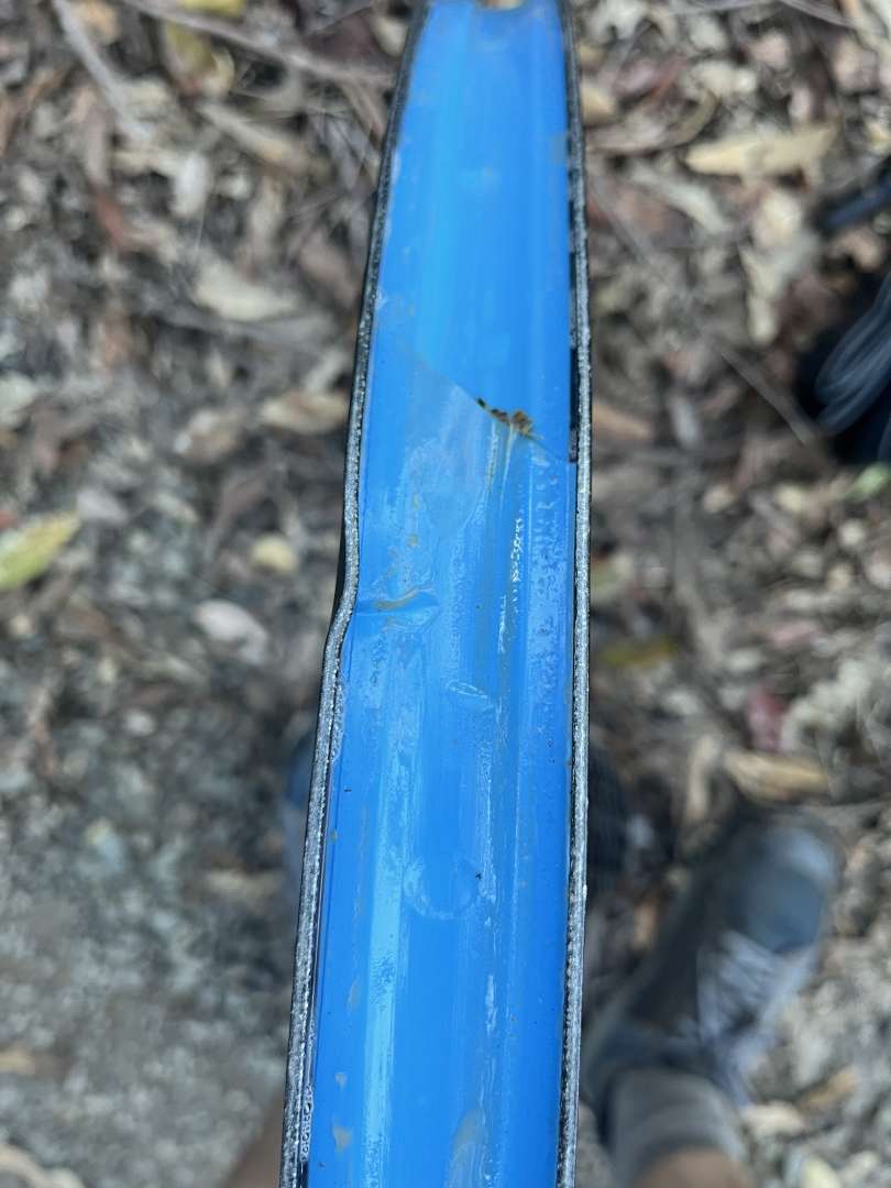 Fixed the rim up. Found an old tyre that held air and came back for another go.