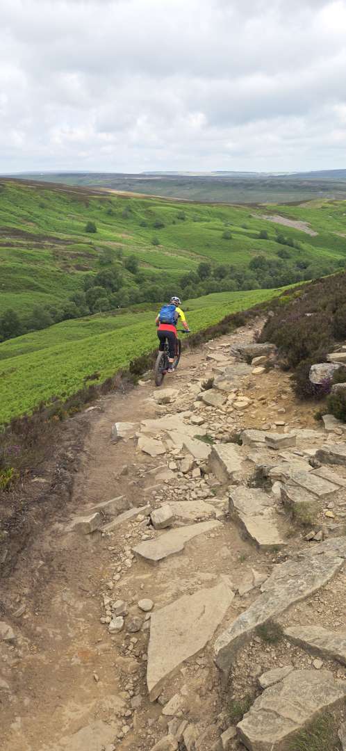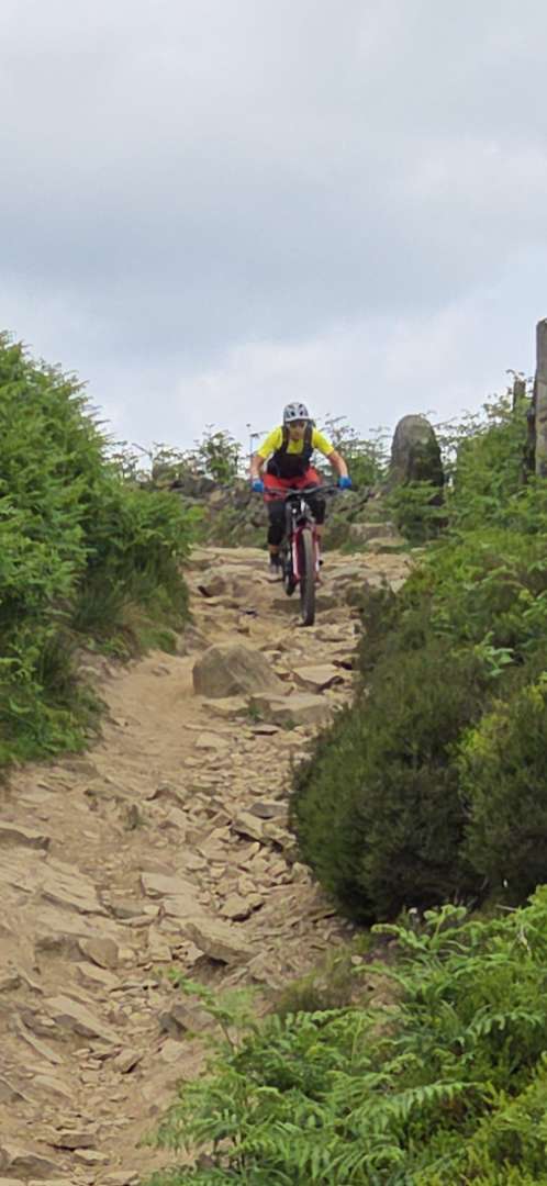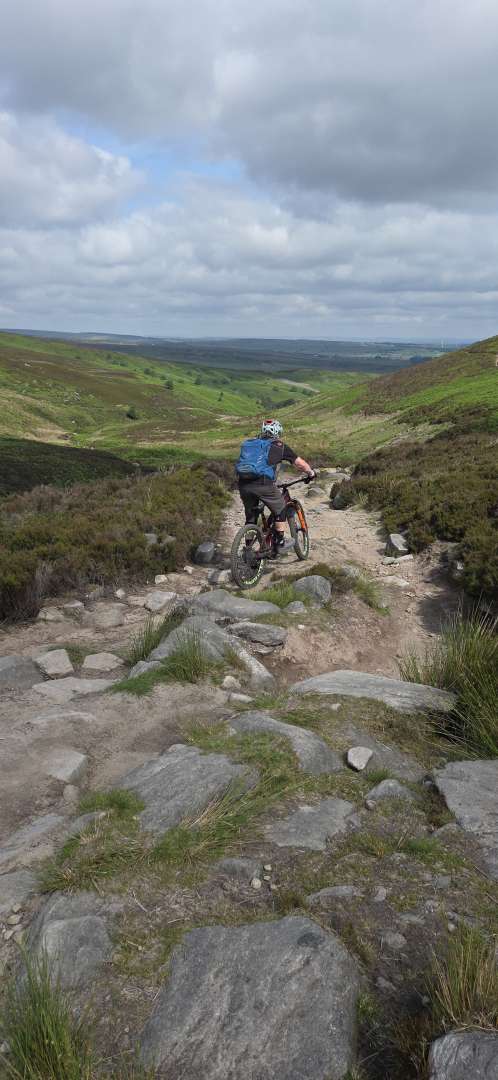 Out and back on Cutgate. It was hot, loose, rocky, dry and dusty. The trail is in as near perfect for blasting down.