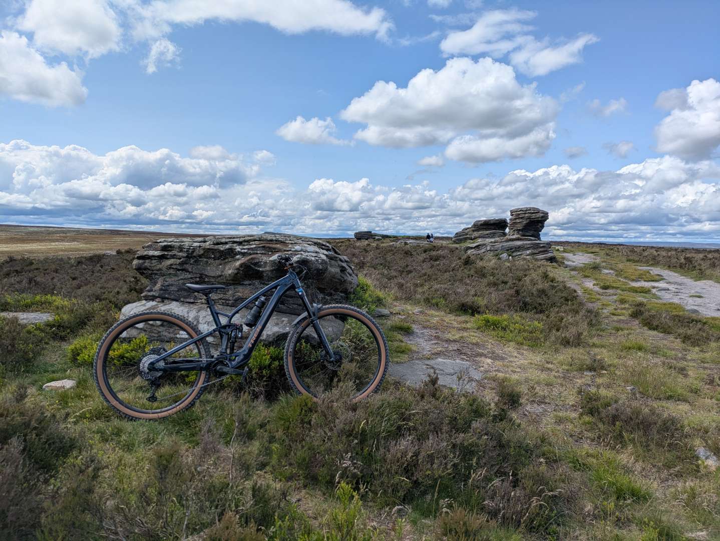 Had intended to get out early and do a big ride in the Peak, but by the time I'd finished off some work stuff left over from yesterday, plus a few domestic chores, that wasn't really on the cards. Decided to do the classic Ramsgill/Scar House loop just out of Pateley Bridge. Never done it before, was a bit frustrating as I'd not left myself enough time for the full loop, parked too far away, and so I had to cut out some of the best stuff and trundle back along the road. Also took the wrong bike really (it's an XC loop really; wish I'd brought the HT instead). Anyway, great to be out, stunning weather and fab scenery ...