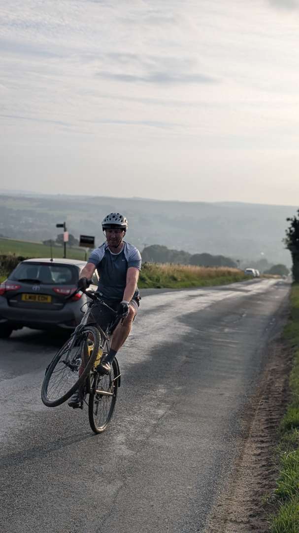 50km gravel ride with a couple of mates last night, including @el_boufador from this parish pulling a much better wheelie on his gravel bike than any of us can manage on our MTBs!