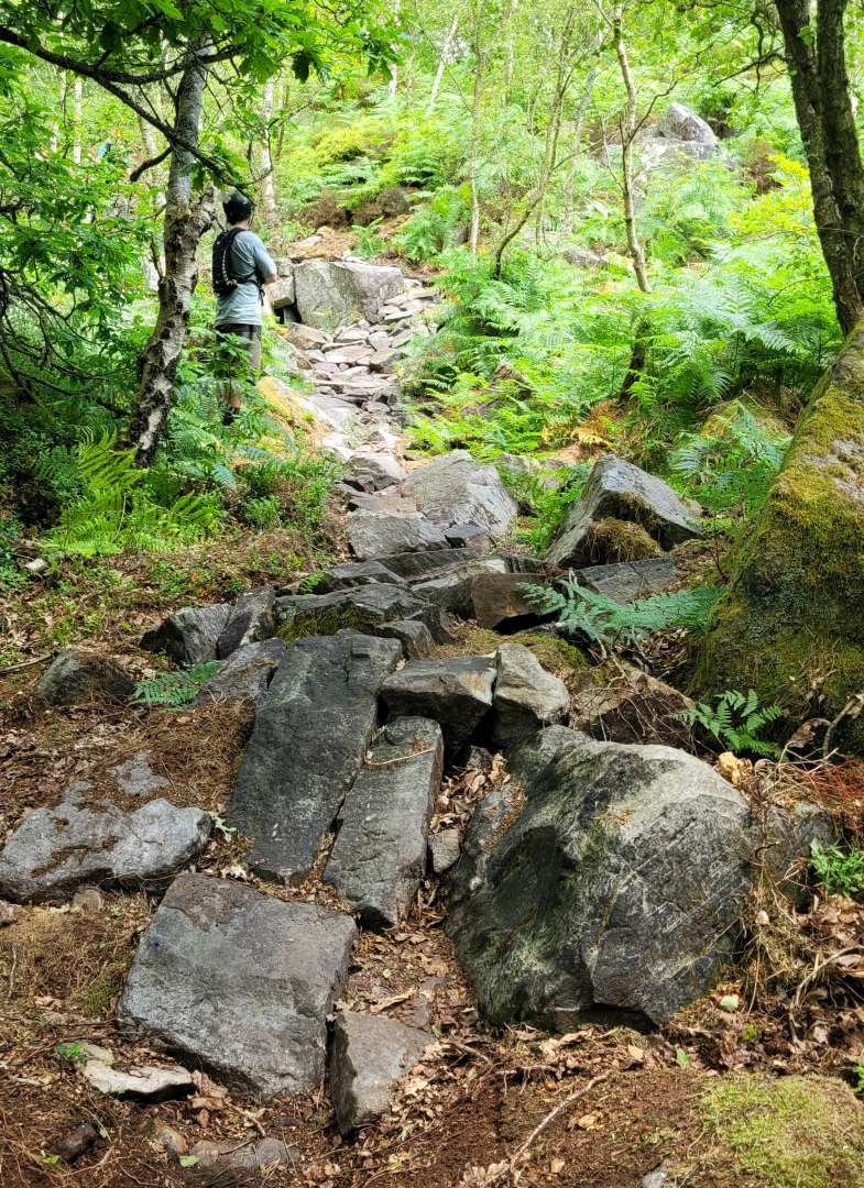 The shuttle can only get so far so there is still a big climb to get to the top