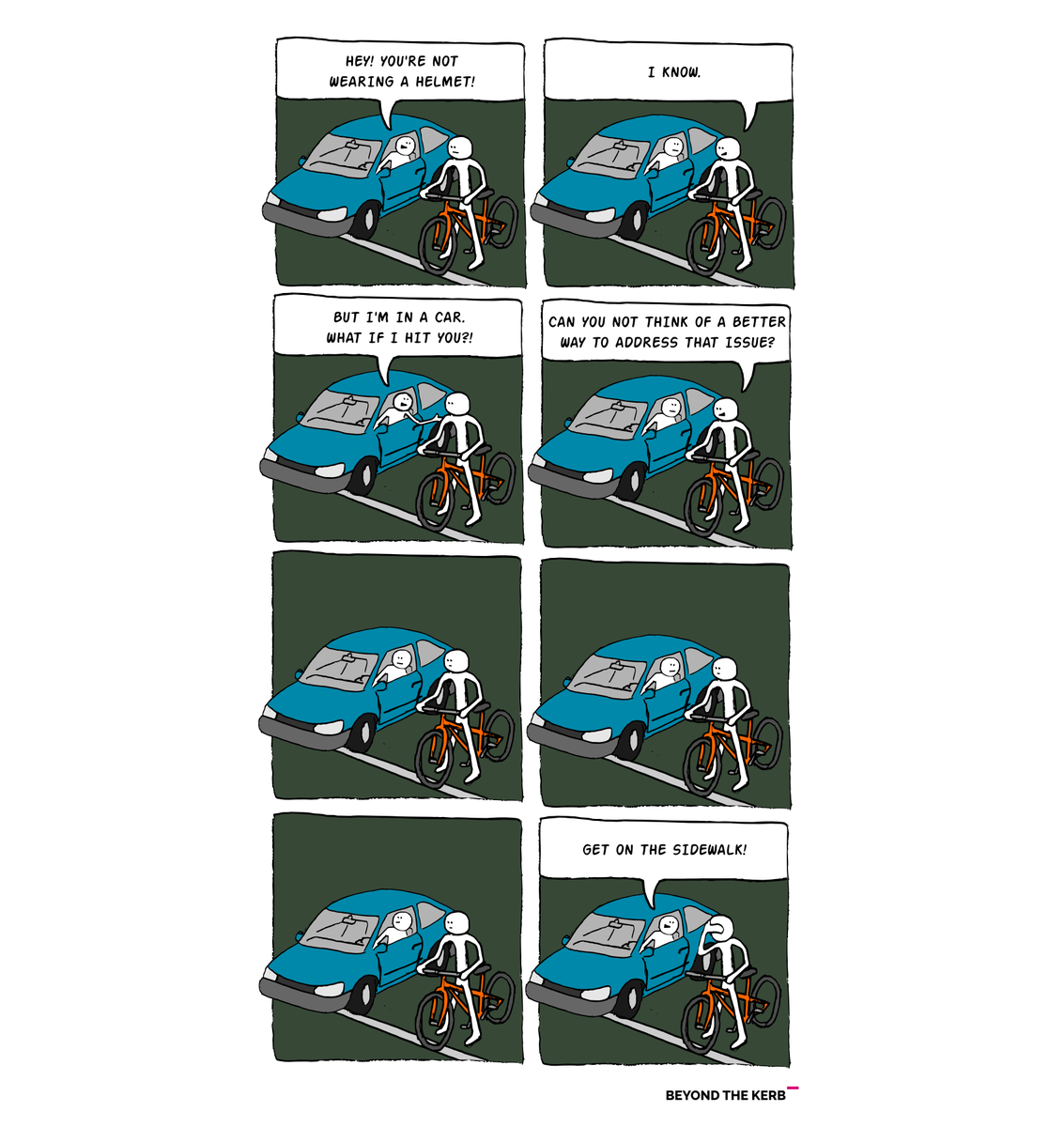 Member of Public: “Because you aren’t wearing a helmet. Anyway, you were in the middle of the road!”