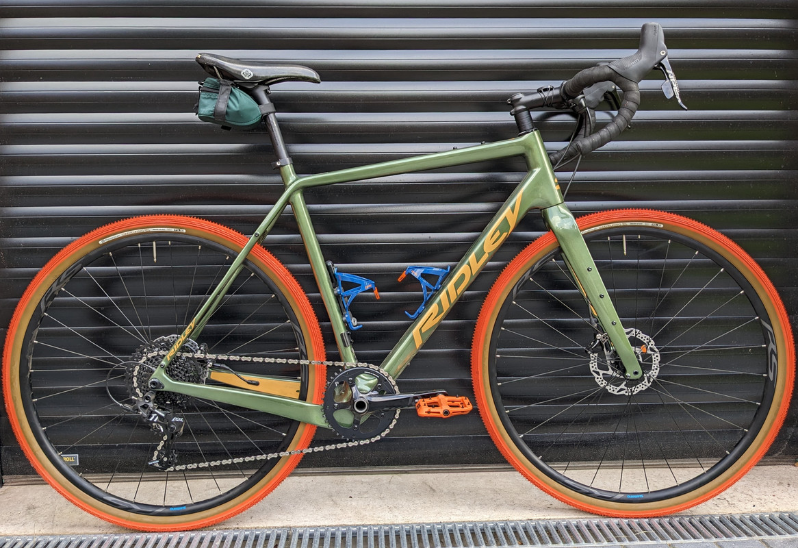 Thank you all, I've gone and ordered the GravelKing SK 43mm in orange with brown sidewalls, a pair of Raceface Chester pedals in orange and orange highlighted bottle cages to complete the look. I'd have felt a bit daft buying another version of the same tyre, it's not logical but, well I've just bought orange kit so where does logic come in. If I change the bars you know there will be orange tape going on there too.