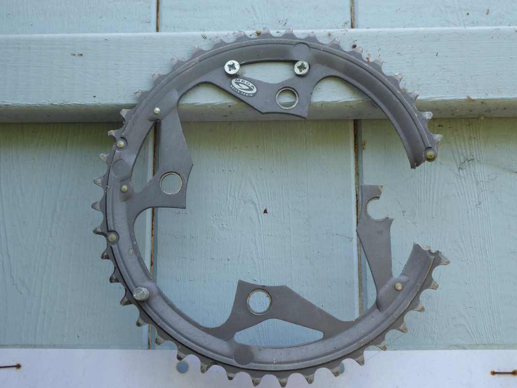 This is my most recent. Still can't work out how I managed to hamfist it to this extent, given I'd actually torqued up the bolts correctly about two weeks prior. My guess is that the combination of this particular chainring and crank needed slightly longer bolts.