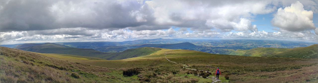 The route was Pengenfford to Waun Fach along the Dragon's Back ridge then south to Pen Twyn Glas and then descending off Pen Allt-Mawr to Cwmdu.