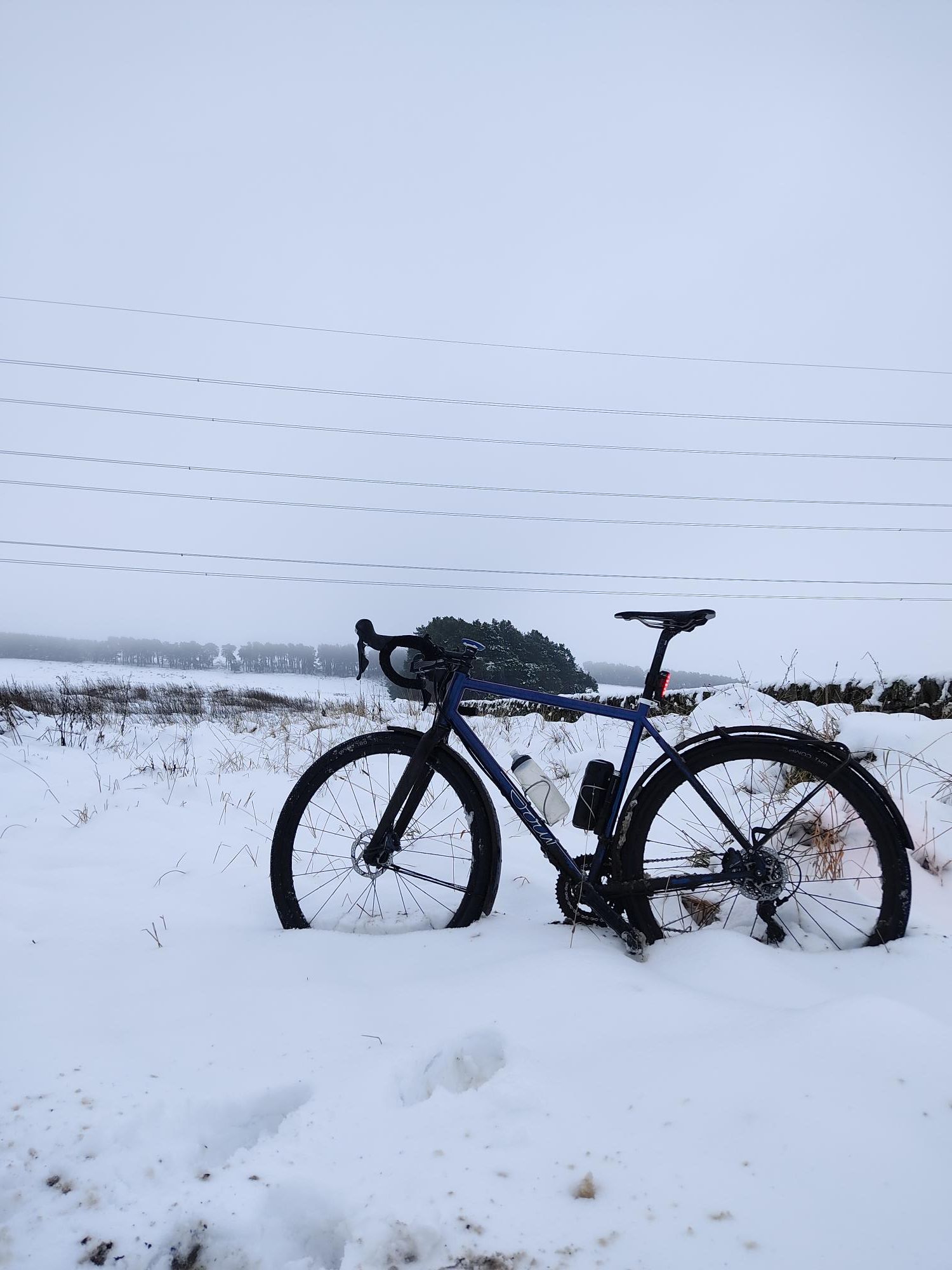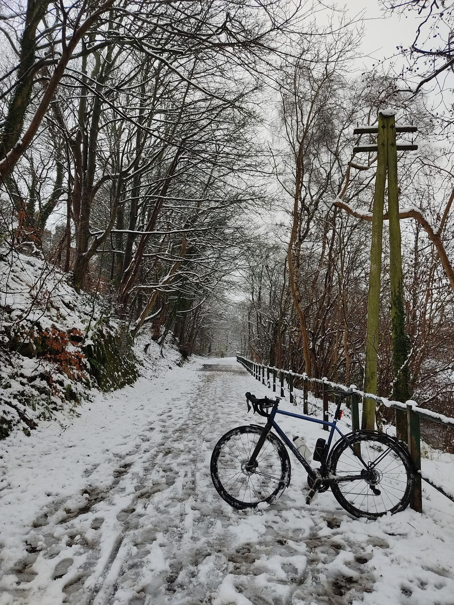 Today was a good example of what's so great about this challenge- I looked out the window this morning, it was cold and grim and I really couldn't be arsed. But I went out, the snow got thicker as I got away from the city and I had one of my favourite rides of the challenge. Slow and a lot of near misses - gravel bikes seem to be more fussy about snow than MTBs - but really excellent fun.