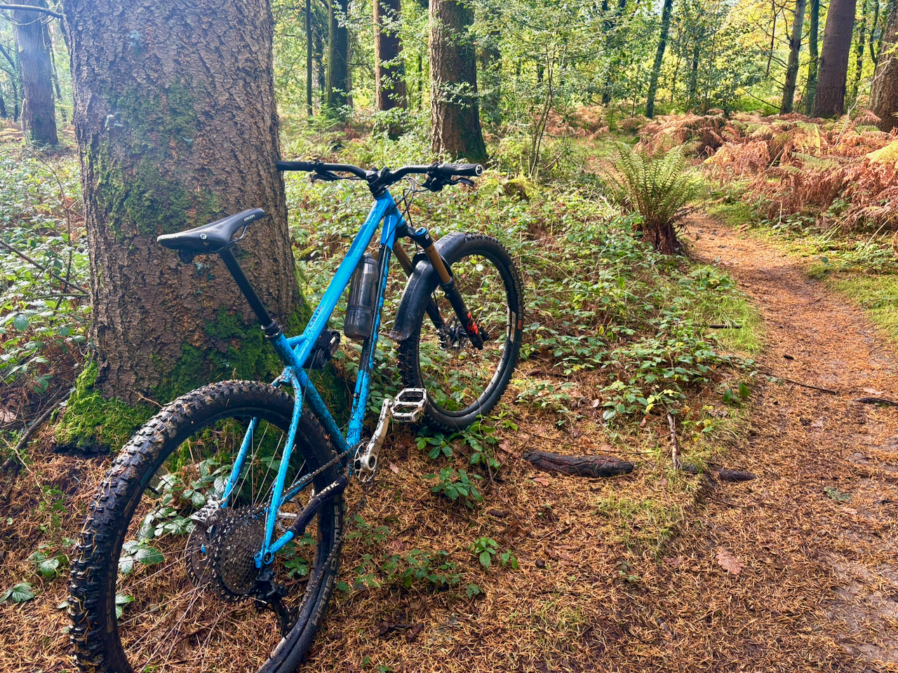 An hour of hardtail in the woods this morning chasing a far better rider on greasy roots and rocks.