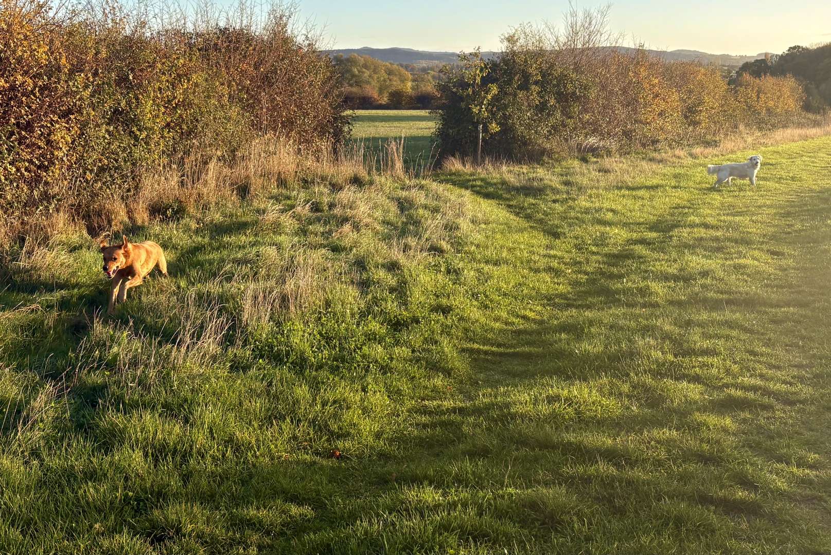 Back on it today, 45 min easy walk with mostly leg rehab'd mutt#1. Swim lunchtime, maybe a Zwift later. Rest of the week is looking busy exercise wise.