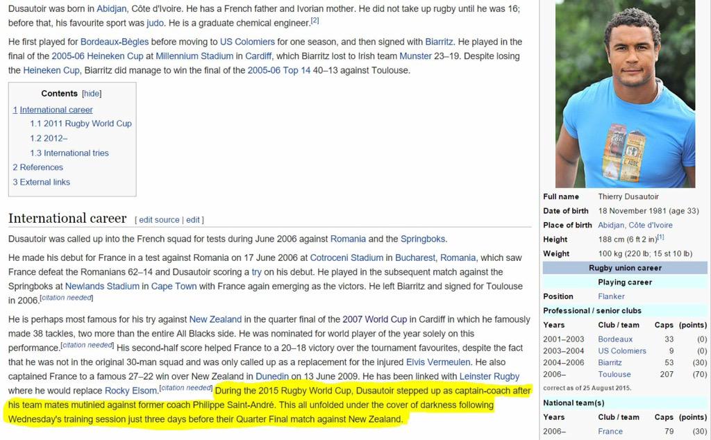 Yeah there's a report in the DT as well saying that the players have revolted - as they did in the last RWC and look what happened then. 🙂