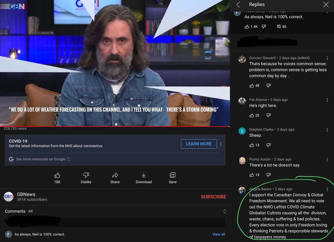 Just be careful. Someone I know 😬 received persistent death-threats and cyberstalking (initially from GB News comment-thread) simply for my I mean their requesting evidence for claims that face-masks don’t affect viral-transmission.