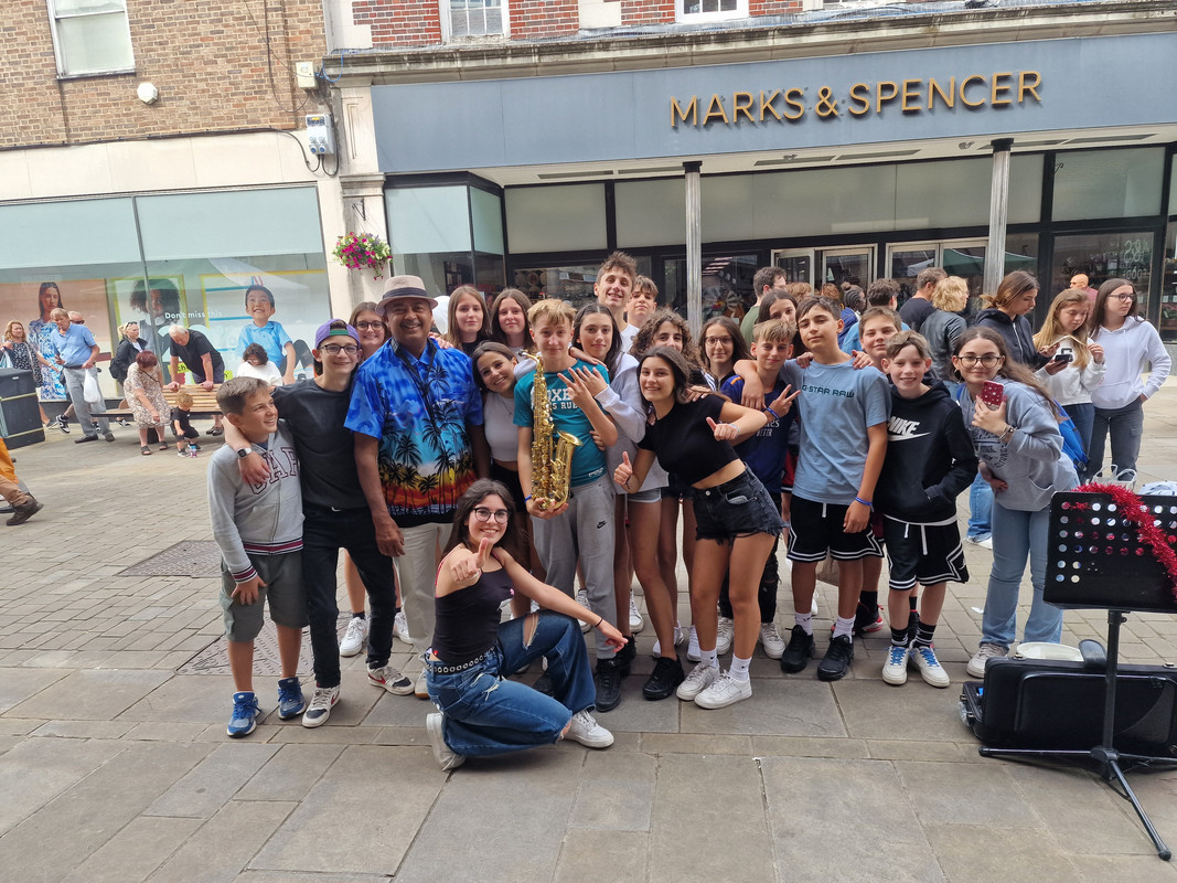 The busker also plays for the Drifters in his spare time and was recently playing O2 but does this for fun when they are not touring. Tony - really nice guy.