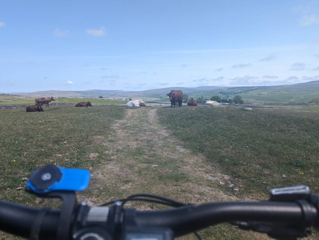 Sorry, I've forgotten how to do quotes. The photo was taken near Horton in Ribblesdale. I rode around the cattle (to the right of the bull in previous pic) and took another photo. Beef cattle (assuming that's what they are) seem a lot less skittish than dairy cows.
