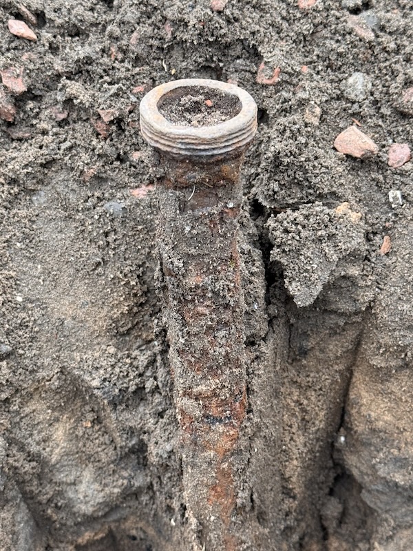 Is the house old enough to have had an outside toilet? Possible water pipe for it? Looks not to be capped, so cut it off.