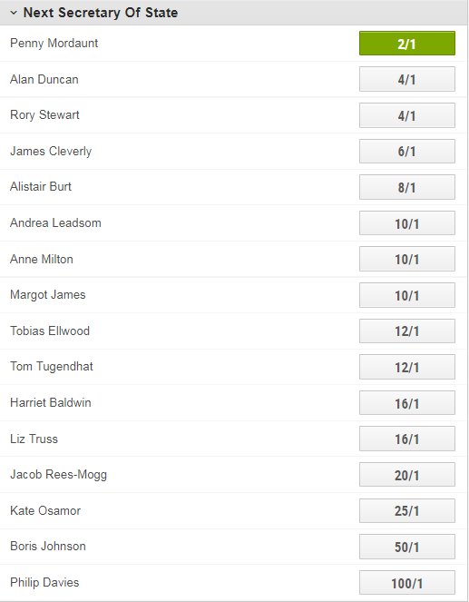 Who's now bookies 2nd favourite to replace Patel, how ironic would that be?