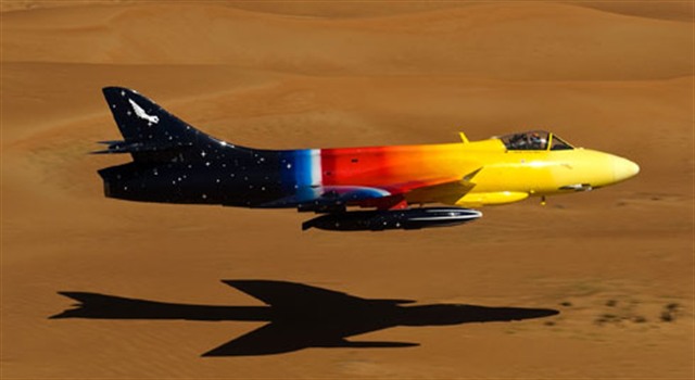 There is a Hawker Hunter flying around out of our local RAF camp - St Athan. It looks to be painted in red, yellow and blue. I have seen a model like this somewhere but can't remember why it was painted like that. Does anyone on here know what it might be about? The hunter was completely retired in 1990 after the Bucaneer was retired from service.